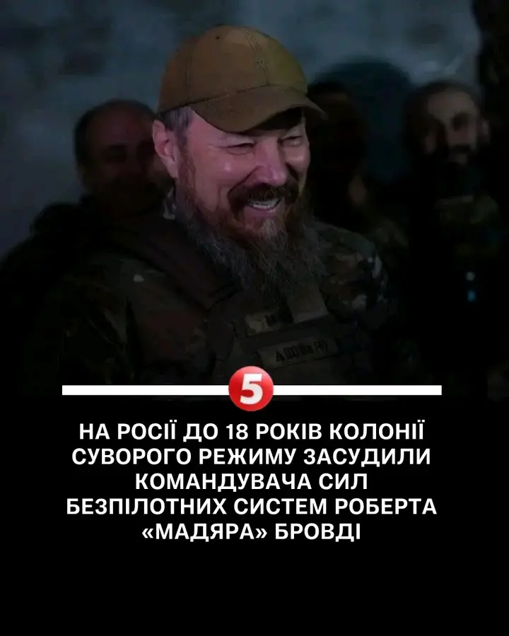 На росії до 18 років колонії суворого режиму засудили командувача Сил безпілотних систем Роберта «Мадяра» Бровді.