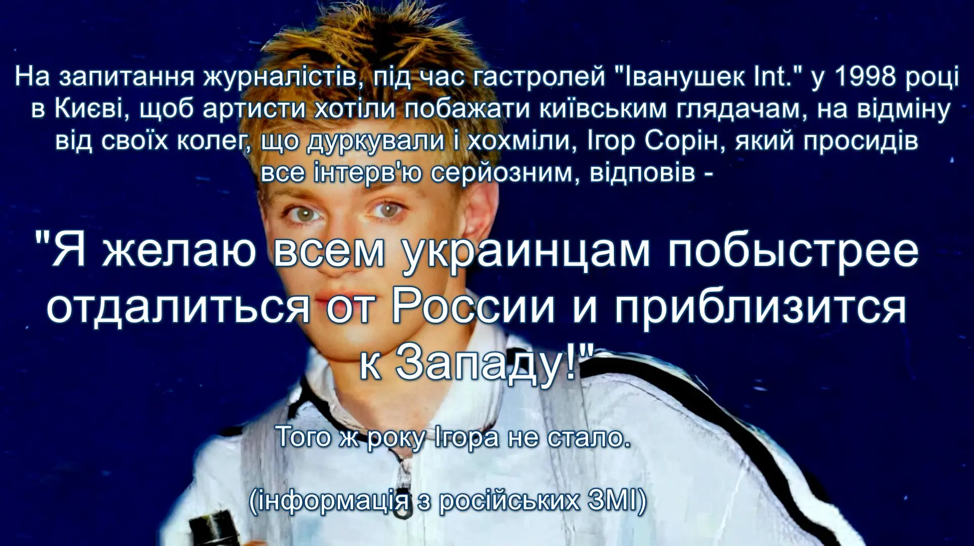 @усіПопередня версія смерті Ігора Соріна була самогубство, але пізніше все більше аналітиків і навіть слідчі прокуратури схилялися до того, що це було замовне вбивство. Але справу було припинено та закрито за вказівкою зверху. Історія подібна до загибелі Володимира Івасюка. @усі1