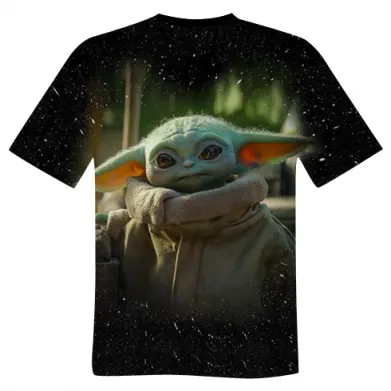 Стильна чоловіча 3D футболка з улюбленим персонажем — Grogu із серіалу The Mandalorian. Милий, але загадковий герой на космічному фоні створює атмосферу пригод та всесвіту Star Wars.