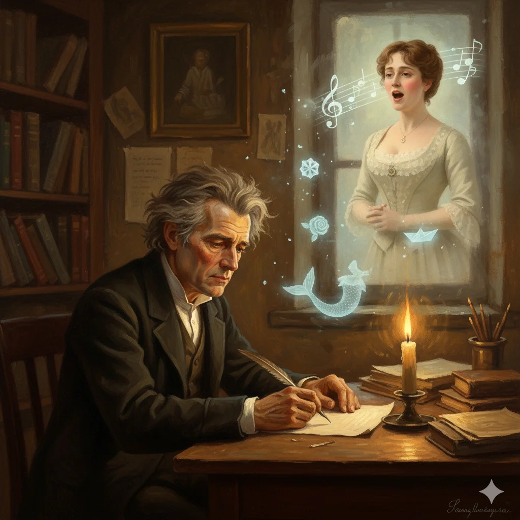 Андерсен, чоловік сором’язливий, незграбний і наділений дитячою вразливістю, одразу ж закохався. Він писав їй щоденно, але це були не типові любовні листи, а скоріше ліричні монологи, сповнені обожнювання та самотності. Він супроводжував її в гастролях, як тінь, мріючи про близькість, яка ніколи не наставала. Для Дженні Лінд він був другом, братом, можливо, кумедним диваком, але не чоловіком її мрії. Вона цінувала його талант, але її серце залишилося неприступним. 🎶