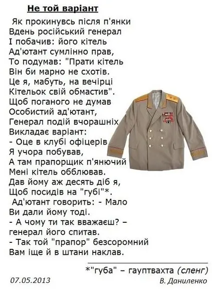 Навіть у ці темні часи українці не втрачають почуття гумору. Тут батько — сам військовослужбовець — нагадує своєму маленькому синові, що підписати контракт можна лише у 18 років, а не у 18 місяців, поки малюк знайомиться з татковим армійським рюкзаком з татковим.