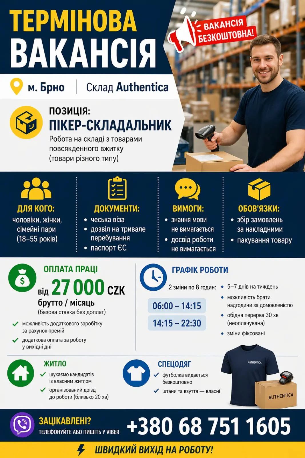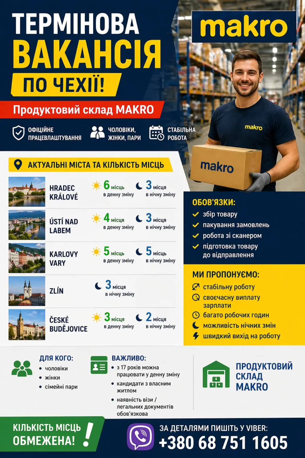 Спільнота створена з метою висвітлення пропозицій роботи від роботодавців у Чехії. Публікуються актуальні вакансії у різних галузях економіки: складська діяльність, виробництва різних напрямків. Наші пропозиції роботи - БЕЗКОШТОВНІ.