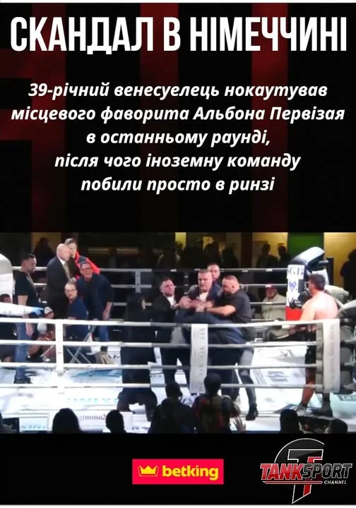 На рингу почалася справжня бійка: одному з членів команди Маріна дісталося добряче. Сам боксер, попри все, не втручався в сутичку - стояв осторонь із ще не знятим спорядженням. Канал DAZN вирішив не показувати кадри цього безладу, який перетворився на дикі побої від розлючених "німців" проти гостей.