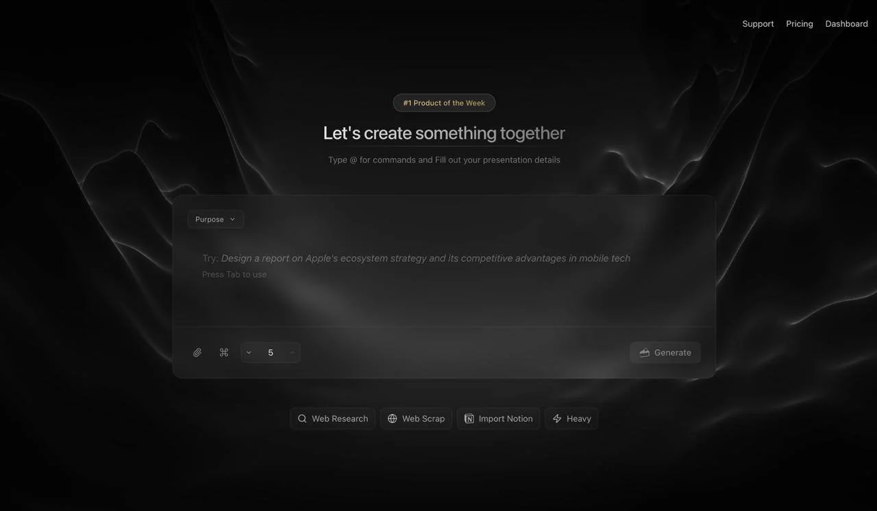 Штучний інтелект, що збирає презентації буквально за пару кліків. Просто введіть тему або тези — і він сам створює структуру, розставляє акценти, додає ілюстрації та підбирає стиль. Працює прямо в браузері, без потреби думати над шаблонами або вручну вирівнювати блоки. Мастхев для студентів, дизайнерів і всіх, хто має справу з презентаціями.