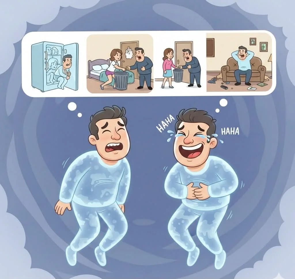 - Був я у коханки, дзвінок у двері, я в паніку. Чоловік. Вона йому відро для сміття у двері подала, поки він ходив, я одягнувся і пішов. Приходжу додому, дзвоню, а дружина мені відро простягає. Я все зрозумів увірвався в квартиру, все перерив, а нікого не знайшов. Сів на диван, сміявся, сміявся, від сміху і помер.