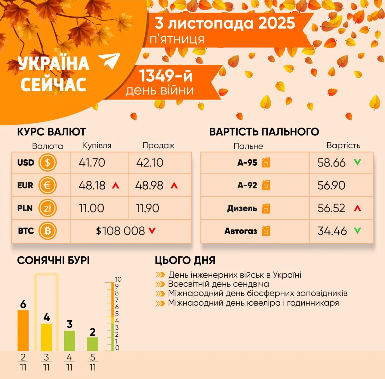 Які сьогодні ще свята, курс валют й ціни на пальне дивіться на нашій інфографіці👆