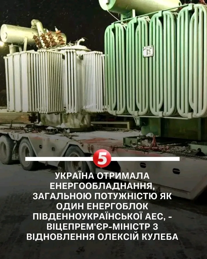 • ❗Україна отримала енергообладнання, загальною потужністю як один енергоблок Південноукраїнської АЕС. Про це повідомив віцепрем'єр-міністр з відновлення Олексій Кулеба.