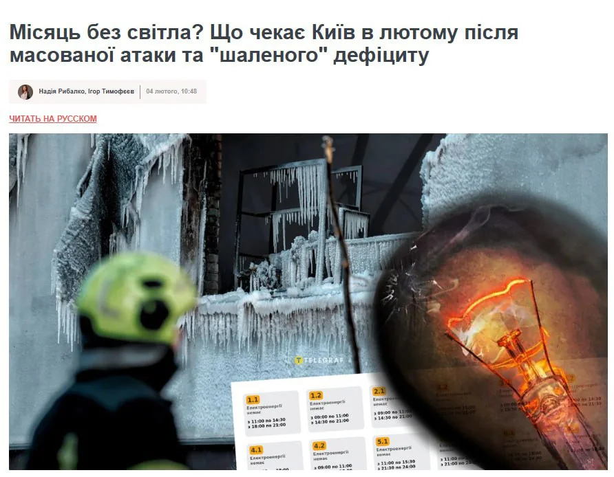 • ❗️У лютому Київ матиме лише 4–6 годин світла на день. ТЕЦ-6 і Дарницька ТЕЦ серйозно пошкоджені, відновлення обладнання може зайняти роки, - голова Ради Української асоціації відновлюваної енергетики Ігнатьєв