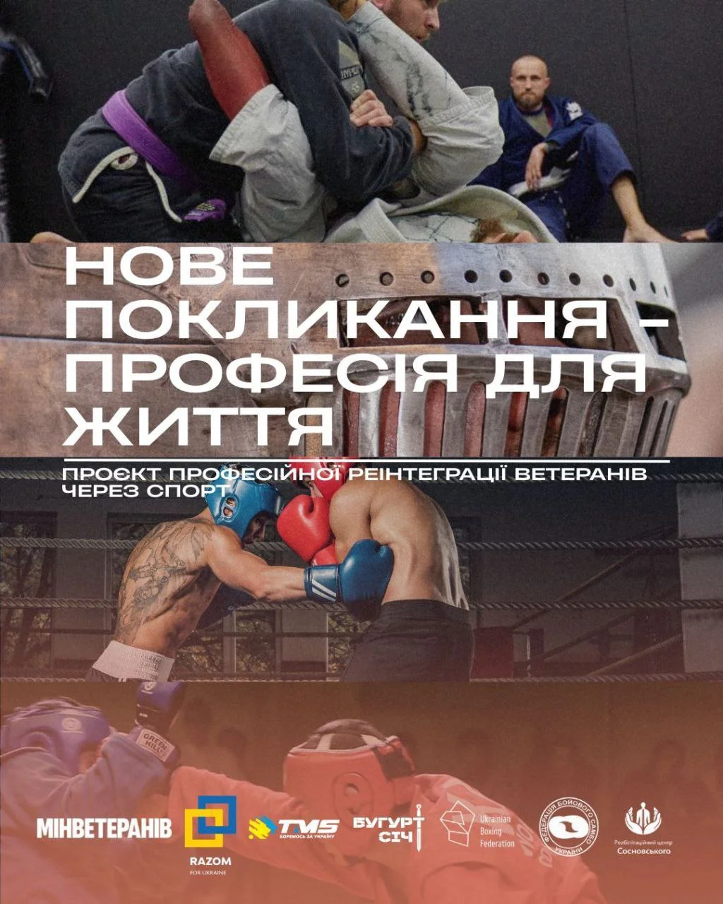 Це реальна можливість отримати нову цивільну професію через спорт і бойові мистецтва. Ми запускаємо підготовку асистентів тренера з бразильського джиу-джитсу, боксу, бойового самбо та середньовічних боїв із подальшим стажуванням і можливістю працевлаштування у спортивних клубах та ветеранських просторах по всій Україні.