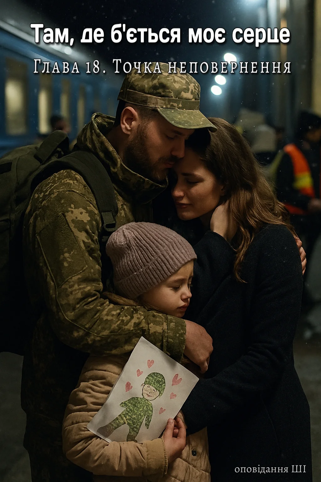 #оповідання #ШІ "Там, де б'ється моє серце" Глава 18. Точка неповернення Грудень 2022. Київ — у передсвятковій напрузі. Вітрини світяться, але світло — як маска, під якою втома. Повітря холодне, прозоре, як скло. Марія йшла вулицею, тримаючи в руках термос із чаєм для Аліни. Вона щойно завершила зустріч із новим клієнтом — невелика логістична компанія, яка шукала стабільність у нестабільному світі. І саме її фірма, яку вона тепер вела разом із Максимом, стала для багатьох такою точкою опори. За ці пів року Марія змінилась. Не зовні — всередині. Вперше за багато років вона прокидалась не з тривогою, а з планами. Вранці — кава з Максимом. Потім — робота, дзвінки, документи. Ввечері — Аліна, яка навчалась дистанційно, але щодня питала: «А коли я знову піду до школи, як раніше?» І Марія відповідала: «Коли стане безпечно. Але ти вже доросла — бачиш, як ми живемо». Аліна справді подорослішала. Вона не плакала, коли чула сирени. Вона просто брала планшет і йшла в коридор, де було безпечніше. І коли Марія поверталась додому, Аліна вже чекала — з малюнком, з новим словом англійською, з питанням: «А Максим сьогодні буде вечеряти з нами?» Він був. Майже завжди. І саме в ці вечори Марія відчувала, що живе. Не виживає — живе. Вони подали заяву на шлюб. Вибрали дату — весна. Мріяли про тиху церемонію, без пафосу. Просто — бути разом. Але того вечора все змінилось. Максим зайшов до кав’ярні на Подолі, де Марія вже чекала. Він був у темному пальто, з трохи вологим волоссям — сніг починав лягати, як тиша. Він сів навпроти, замовив чорну каву. І мовчав. — Ти затримався, — сказала Марія, усміхаючись. — Я вже думала, що ти втік. — Я був у «Синій чашці», — відповів він. — Там сиділи двоє військових. У формі, з рюкзаками. Один пив какао, другий — американо. Я не хотів слухати, але вони говорили голосно. Марія нахилилась ближче. Її усмішка зникла. — Один сказав: «Мелітополь — це ключ. Якщо ми його не візьмемо — війна затягнеться». — А другий додав: «Там усе заміновано. Але люди чекають. Вони вірять, що ми прийдемо». Марія стиснула пальці. Її рідне місто. Її дитинство. Її біль. Вона мовчала, але очі — вже говорили. — Я маю бронь, — сказав Максим. — Через фірму. Але я її знімаю. Я подав заявку добровольцем. Її серце зупинилось. Потім — як удар. Вона не одразу знайшла слова. — А ми? — запитала тихо. Максим взяв її руки. Його голос був рівним, але глибоким: — Ми — є. І будемо. Але я не можу більше жити в комфорті, коли твоє місто — в окупації. Коли ти мовчки читаєш новини і нічого не кажеш. Я йду не як герой. Я йду, бо люблю. Марія заплющила очі. Її серце билося гучно, як сирена. Вона не плакала. Вона просто тримала його руки. — Я не хочу, щоб ти йшов, — сказала вона. — Але я не можу тебе зупинити. — І не повинна, — відповів він. — Бо ти — моя причина. Не перешкода. Наступного дня він передав їй документи. Всі паролі, всі ключі. Сказав: — Ти керуєш. Ти зможеш. Я вірю в тебе більше, ніж у себе. Аліна сиділа на дивані, малювала листівку. Коли Максим підійшов, вона підняла очі: — Ти кудись їдеш? — Так, — відповів він. — На деякий час. Але я повернусь. — А ти візьмеш мою листівку? Там написано: «Тато, ти найсміливіший». Я сама придумала. Максим обійняв її. Довго. Мовчки. Потім — Марію. Вона не говорила нічого. Просто тримала його, як тримають повітря, яке не хочуть відпускати. На вокзалі було людно. Волонтери роздавали чай.