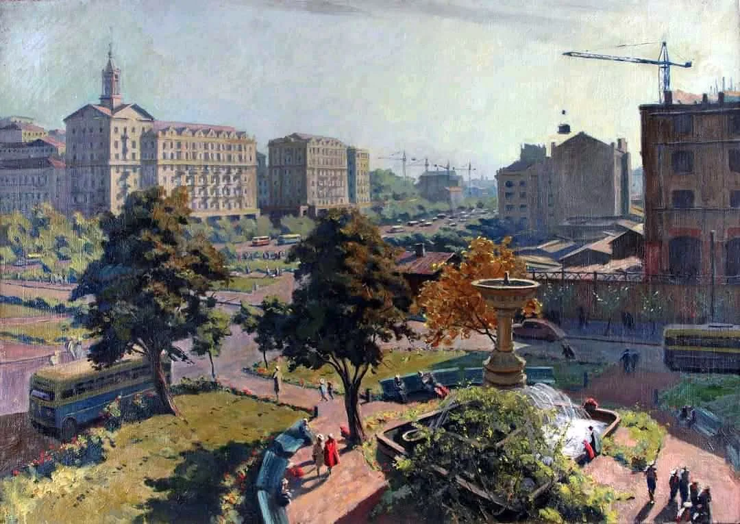 Картинки з минулого...💙💛 Відродження Хрещатика. На нинішньому Майдані Незалежності. Художник Олександр Хвостенко-Хвостов (1895-1968).🎨
