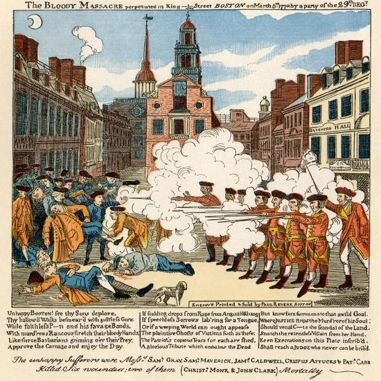 Гравюра-фейк: Пол Ревір створив знамениту гравюру, де британці зображені як безжальні вбивці, що за наказом офіцера розстрілюють мирний натовп. Насправді офіцер стояв перед солдатами (намагаючись зупинити стрілянину), а натовп був озброєний палицями. 🖼️✍️
