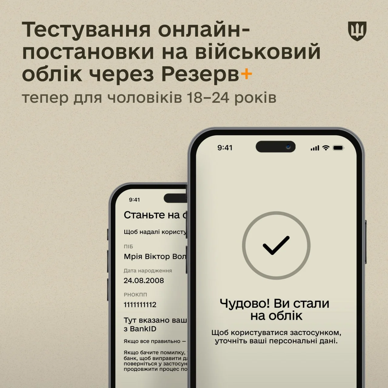 • Тестуємо онлайн-постановку на військовий облік у Резерв+ для чоловіків 18–24 років, — Міноборони.