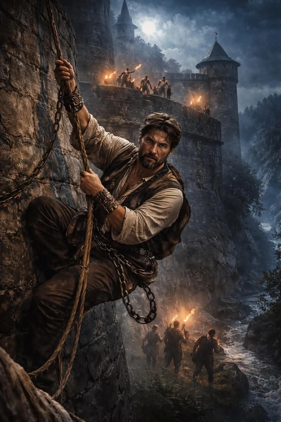 Метрові стіни, варта на кожному кроці. Кармелюк — у кайданах, прикутий до стіни.