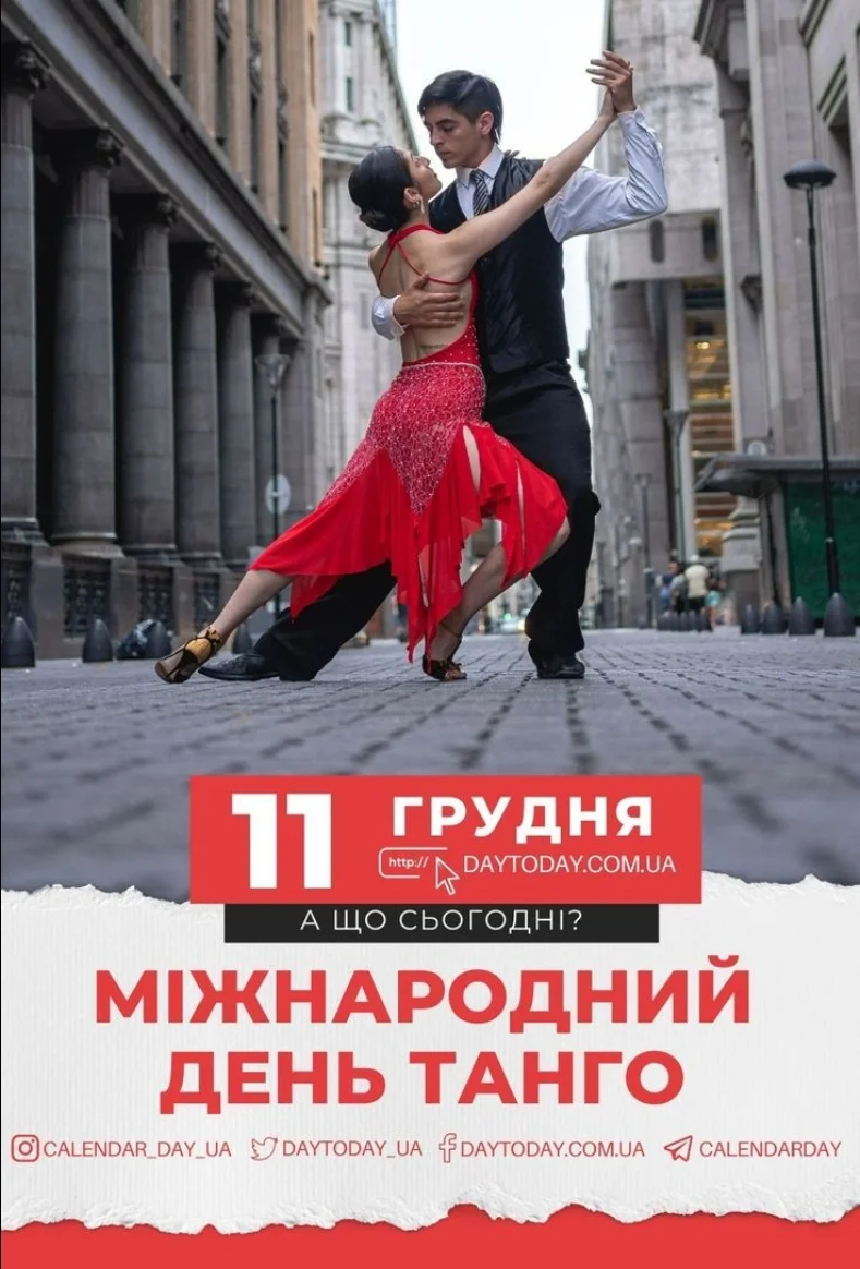 11 грудня — це день, коли світ відзначає Міжнародний день танго (Día Nacional del Tango). Це не просто свято танцю, а вшанування унікального культурного явища, яке народилося на перехресті двох континентів і визнане нематеріальною спадщиною людства.