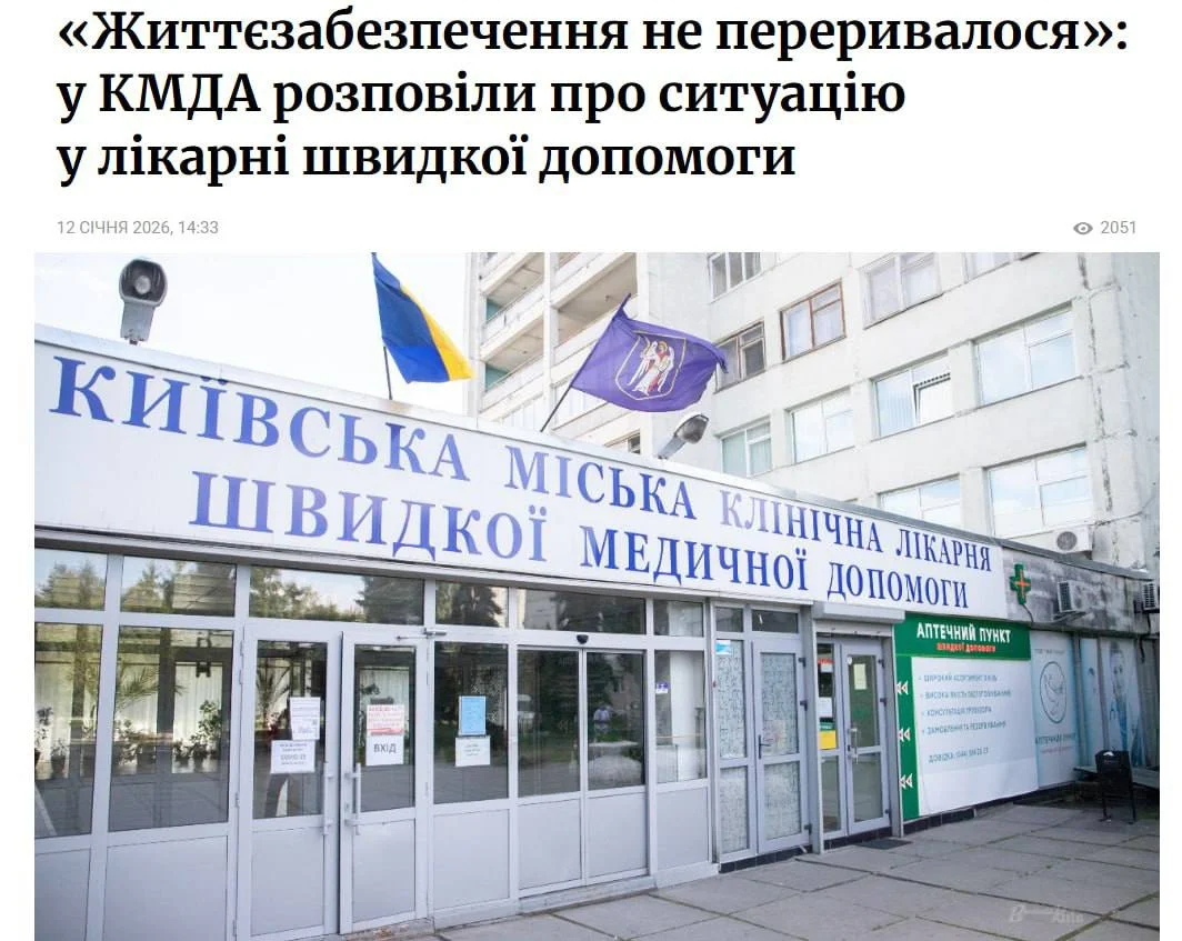 • ⚡️ «Життєзабезпечення не переривалося» — у КМДА пояснили ситуацію в лікарні швидкої допомоги під час обстрілу 9 січня