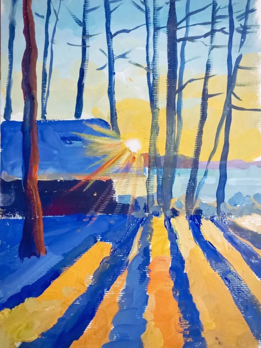 ❄️ Взимку вечоріє значно раніше, аніж у теплі пори року. Проте, зимовий вечір може бути дуже красивим! 🎨 Пропонуємо вам поглянути на те, як зобразила вечір викладачка Ізюмської художньої школи ім. С.І. Васильківського Наталія Маріненко. 🖼 Робота «Вечоріє»