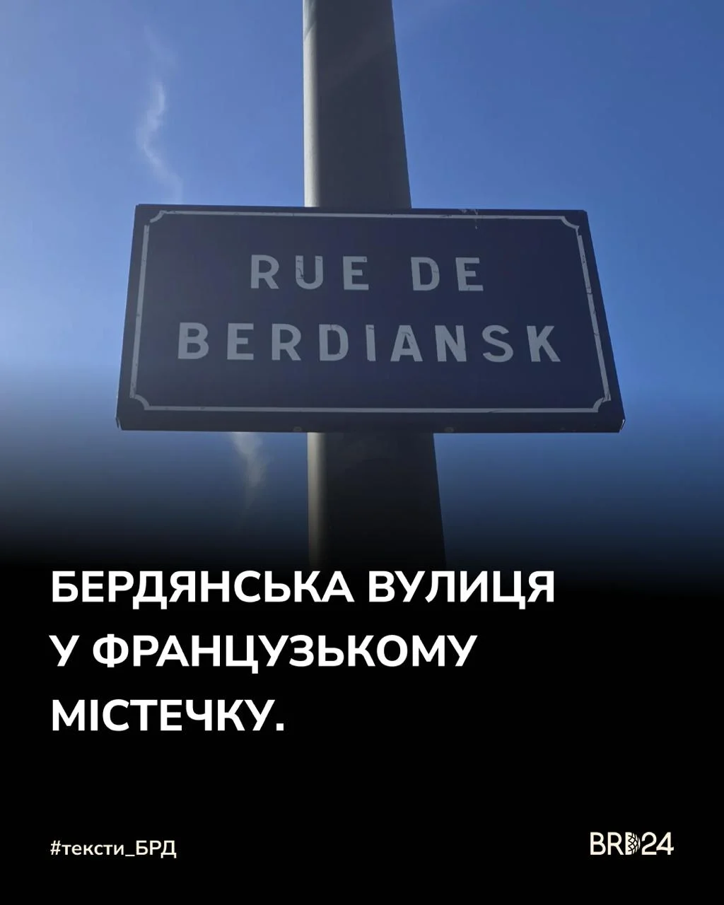 «Йду по справах до адміністративного центру. Кручу головой, шукаю офіс. І тут аж серце захололо. Вулиця Бердянська. Тут, во Франції.