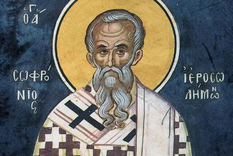 Святитель Софроній, патріарх Єрусалимський — один з видатних отців Церкви VII століття. Народився близько 560 року в Дамаску (Сирія), здобув блискучу освіту, за що отримав прізвисько "Софроній Софіст" (тобто мудрець, знавець). У молодості разом з другом Іоаном Мосхом (автором "Лимонаря", або "Луга духовного") вів аскетичне життя: спочатку в монастирях Палестини, потім у Єгипті, а згодом у Римі та Константинополі через переслідування персів і арабів.