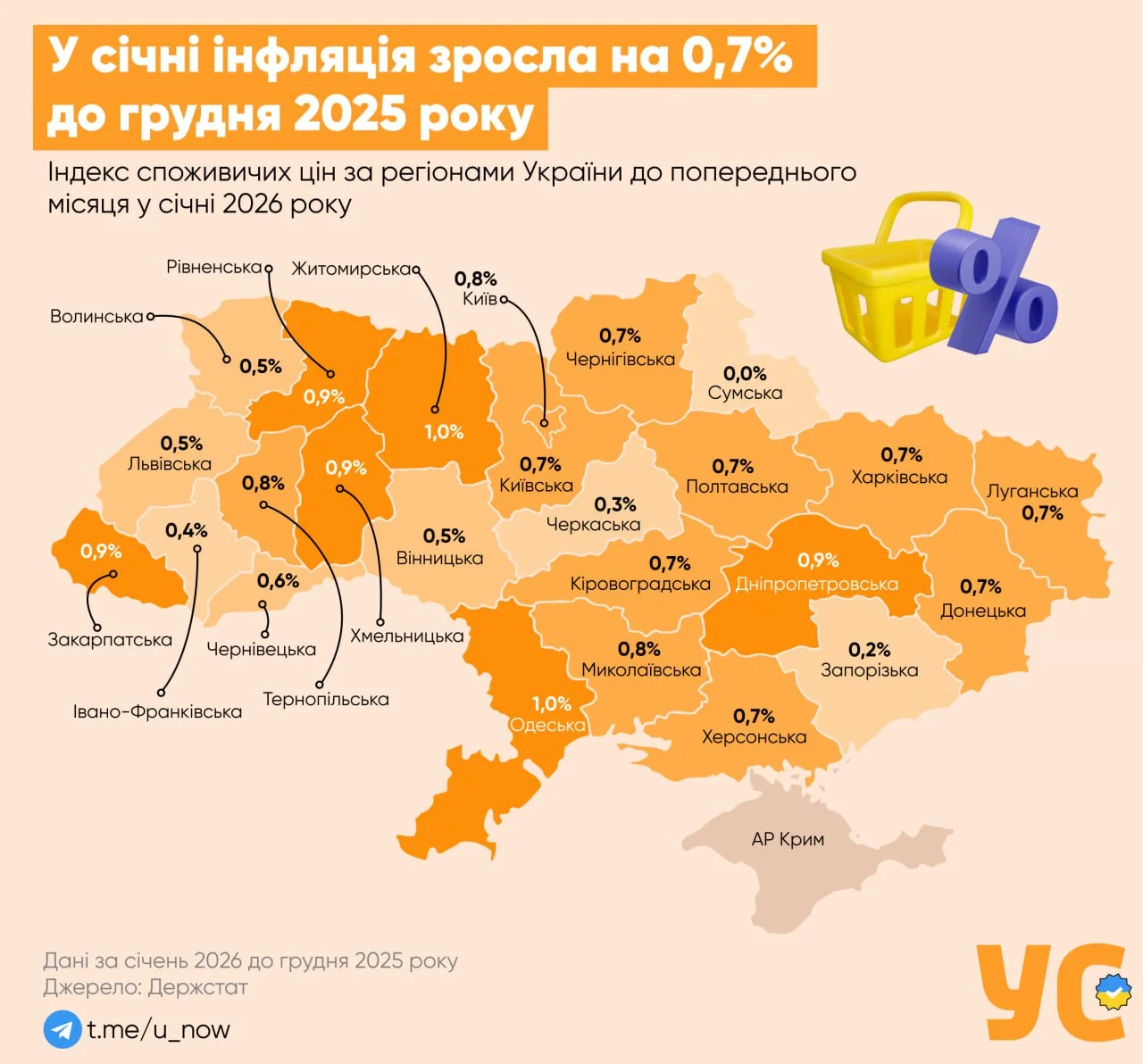 🇺🇦 На Житомирщині та Одещині інфляція зросла на 1% за один місяць — це найбільший приріст серед регіонів, — інфографіка «УС» Загалом інфляція на споживчому ринку в січні 2026 порівняно із груднем 2025 року становила 0,7%, із січнем 2025 року — 7,4%. Наскільки в кожному регіоні України зросли споживчі ціни — дивіться в нашій інфографіці 👆 #Україна #Новини_України @News #News_Ukraine #Ukraine @Ukrainian_news #Українські_новини @Українські_новини