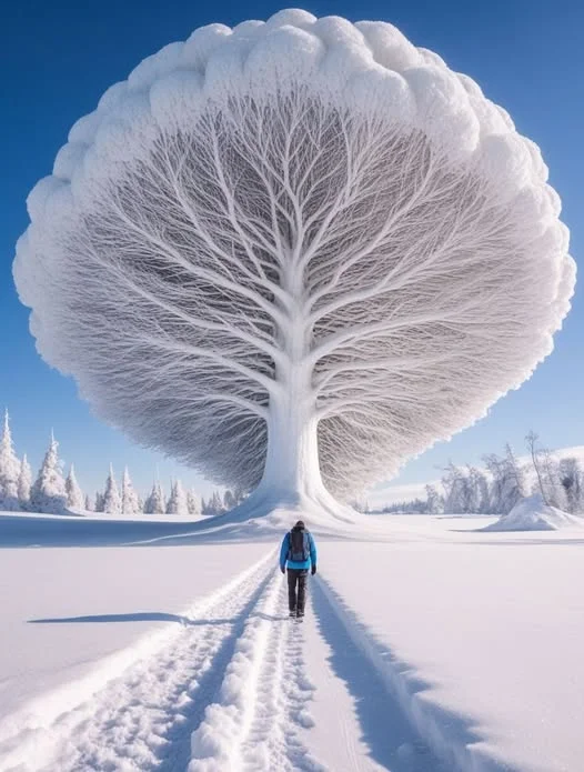 Зима на Алясці не просто малює пейзажі, вона перетворює їх на живі скульптури. Цей захоплюючий гігант вирізаний не людськими руками, а терпляче формується вітром, водою та часом. Природа не слідкує за кресленнями, але вона все одно створює досконалість. ❄️🌿 Хтось віре у таке ствотіння? Мені здається, що це штучний інтелект.