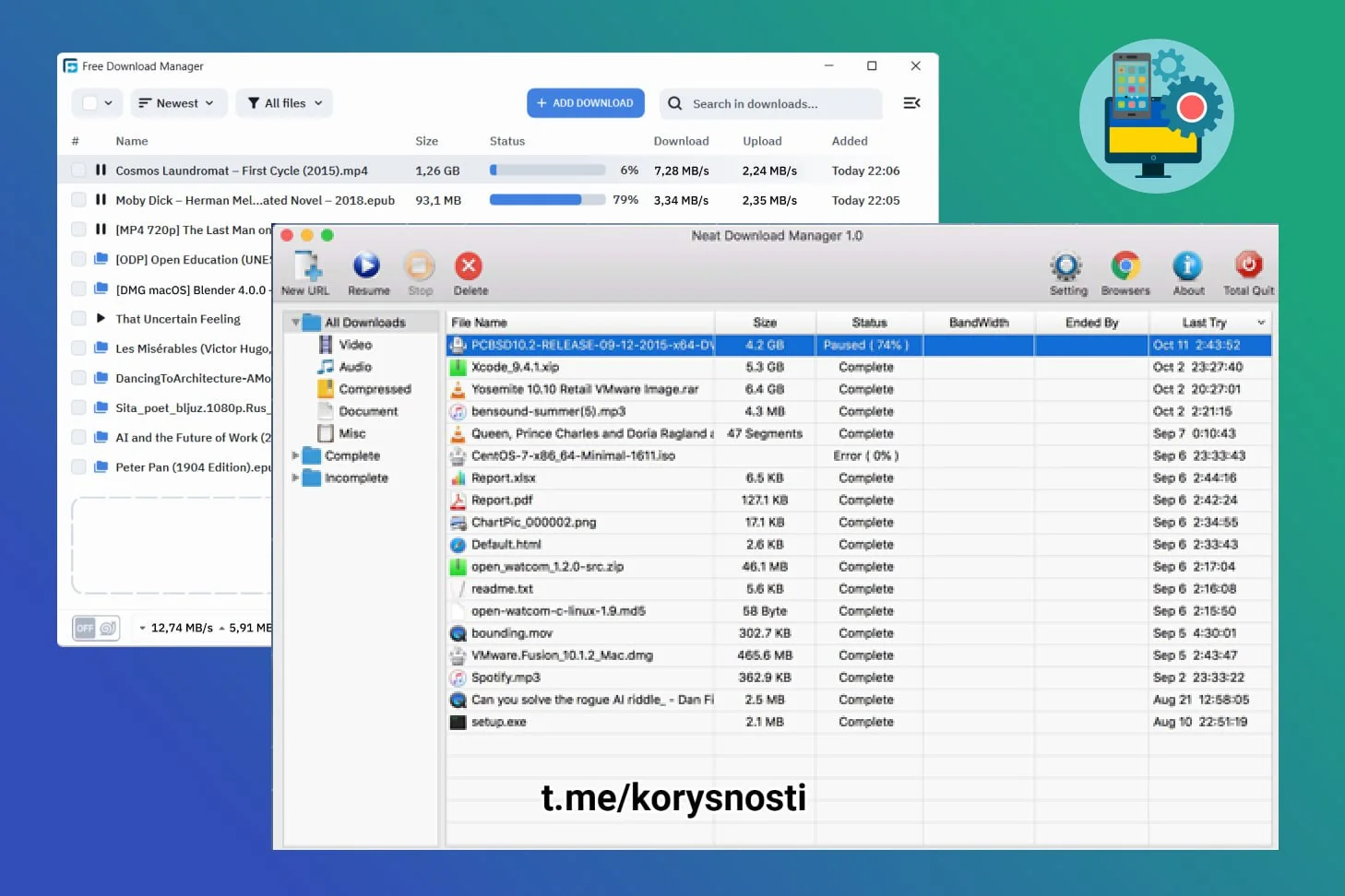 ℹ️ Даний клас програм допомагають завантажувати великі файли при нестабільному чи повільному інтернеті, що при відключеннях світла може бути на мобільному інтернеті. Також вони допоможуть продовжити завантаження при відновлені інтернету або увімкнені пристрою, оскільки браузери відновити завантаження не завжди знатні.