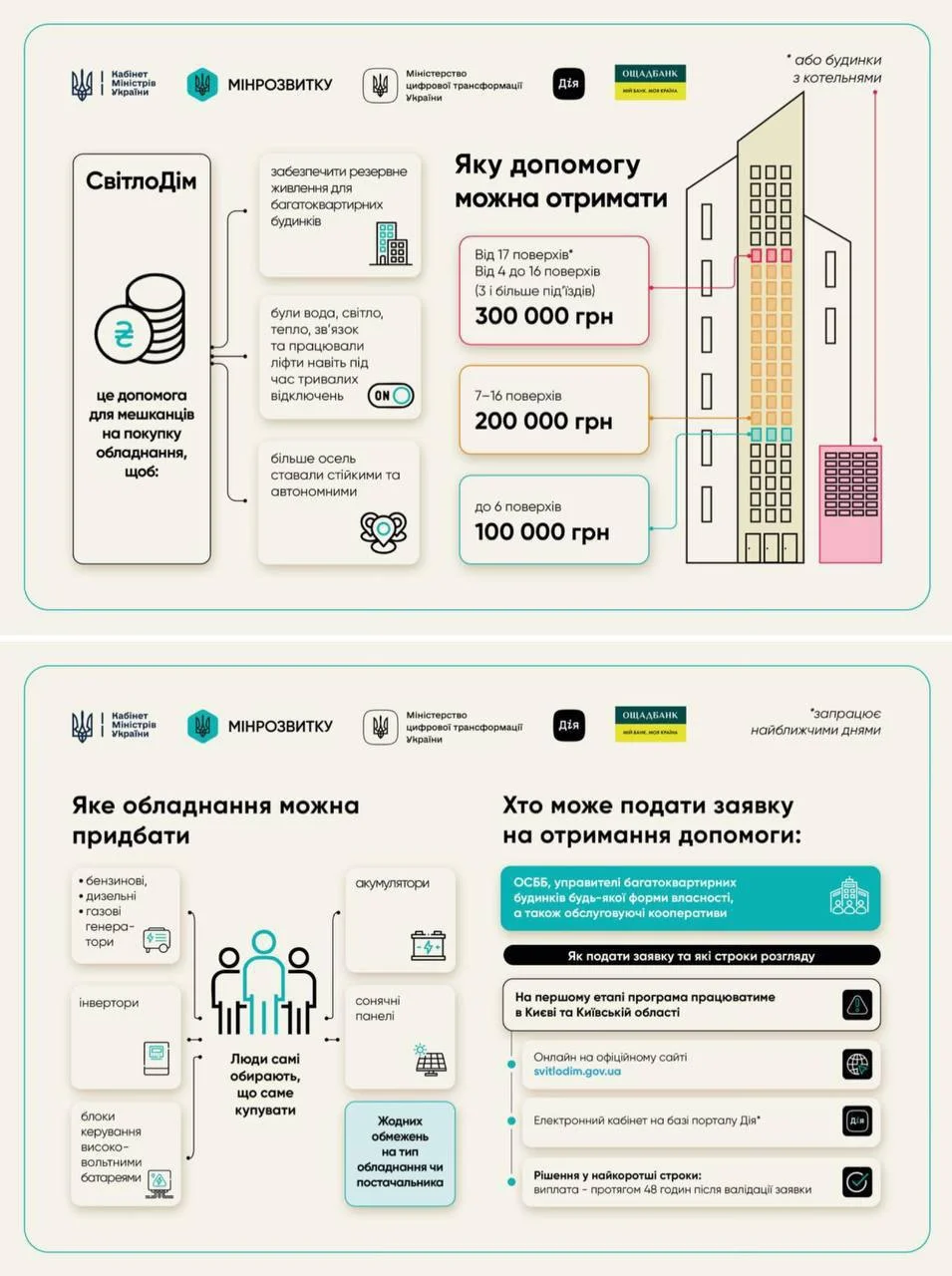 ❗️До 300 000 грн на закупівлю генераторів та акумуляторів для багатоповерхівок можуть отримати ОСББ — Свириденко