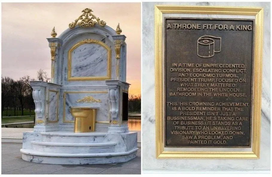 • Нічого особливого: у Вашингтоні встановили золотий унітаз «для Трампа» з написом «Трон, гідний короля».
